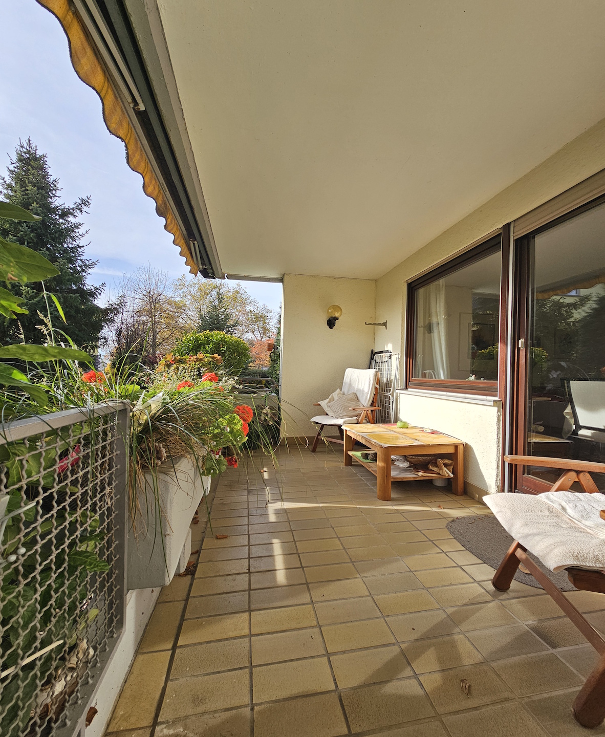 Die Wohnung befindet sich im Hochparterre eines Mehrfamilienhauses mit 16 Eigentumswohnungen. 4 gut belichtete Zimmer, darunter der großzügige Wohn- und Essbereich mit Zugang zum Südbalkon und in den gemeinschaftlichen Garten sowie das Tageslichtbad bieten einen hohen Wohnkomfort. Die separate Küche lässt sich gut möblieren und hat Platz für eine Essecke. Neben einem praktischen Kellerraum gehören ein Tiefgaragenstellplatz sowie ein oberirdischer Kfz-Stellplatz zur Wohnung.