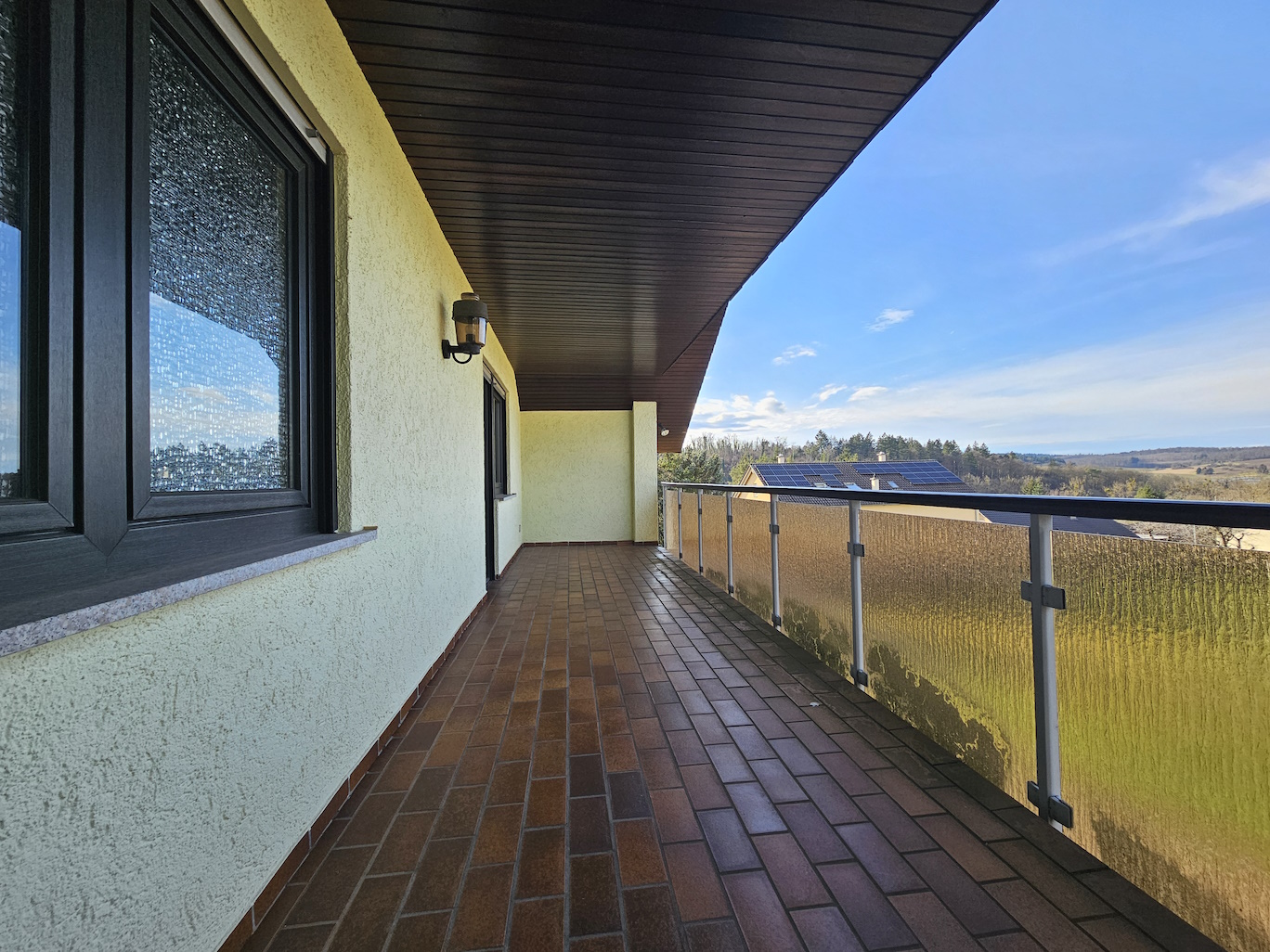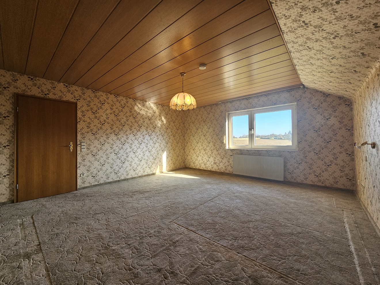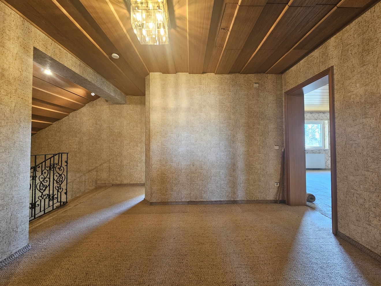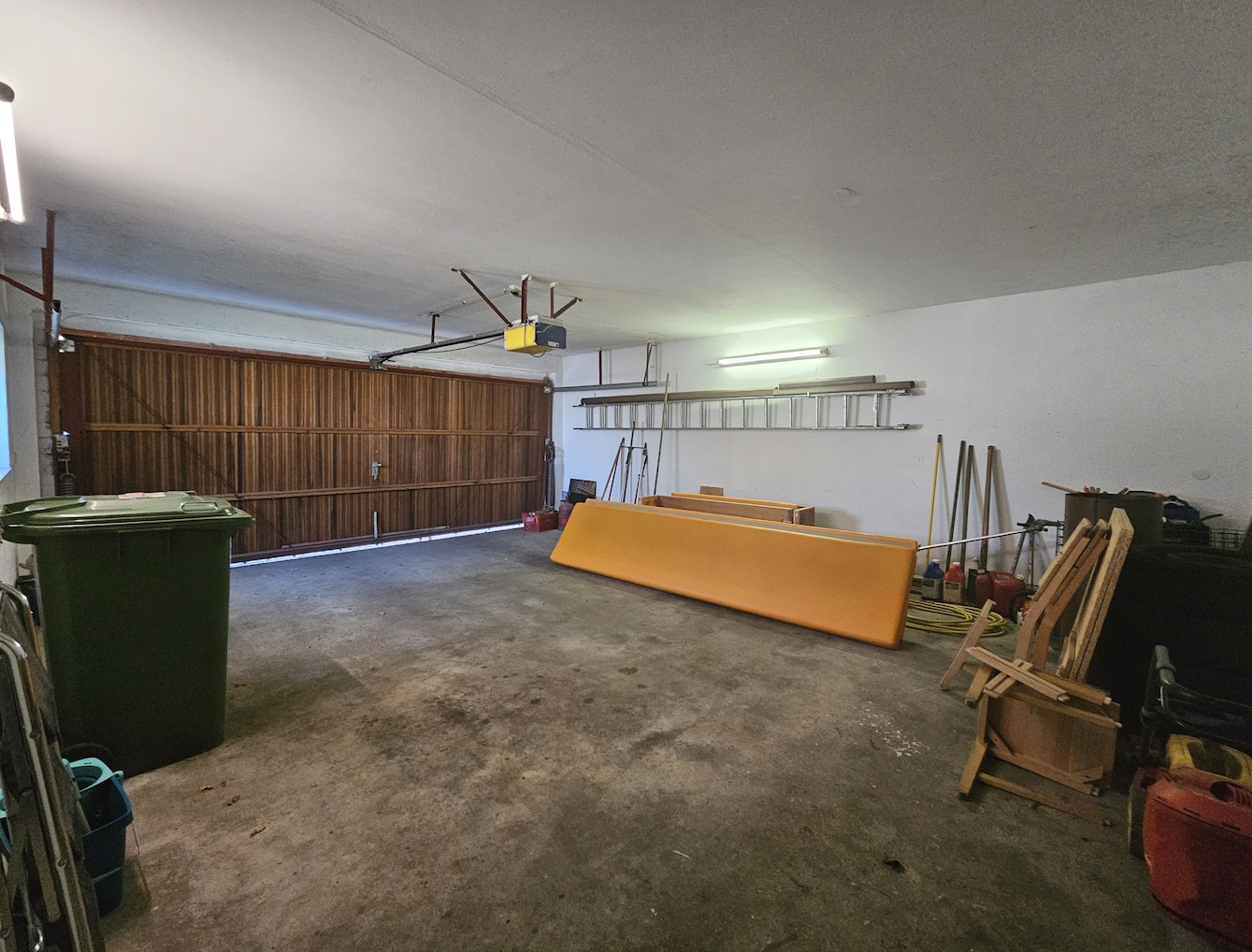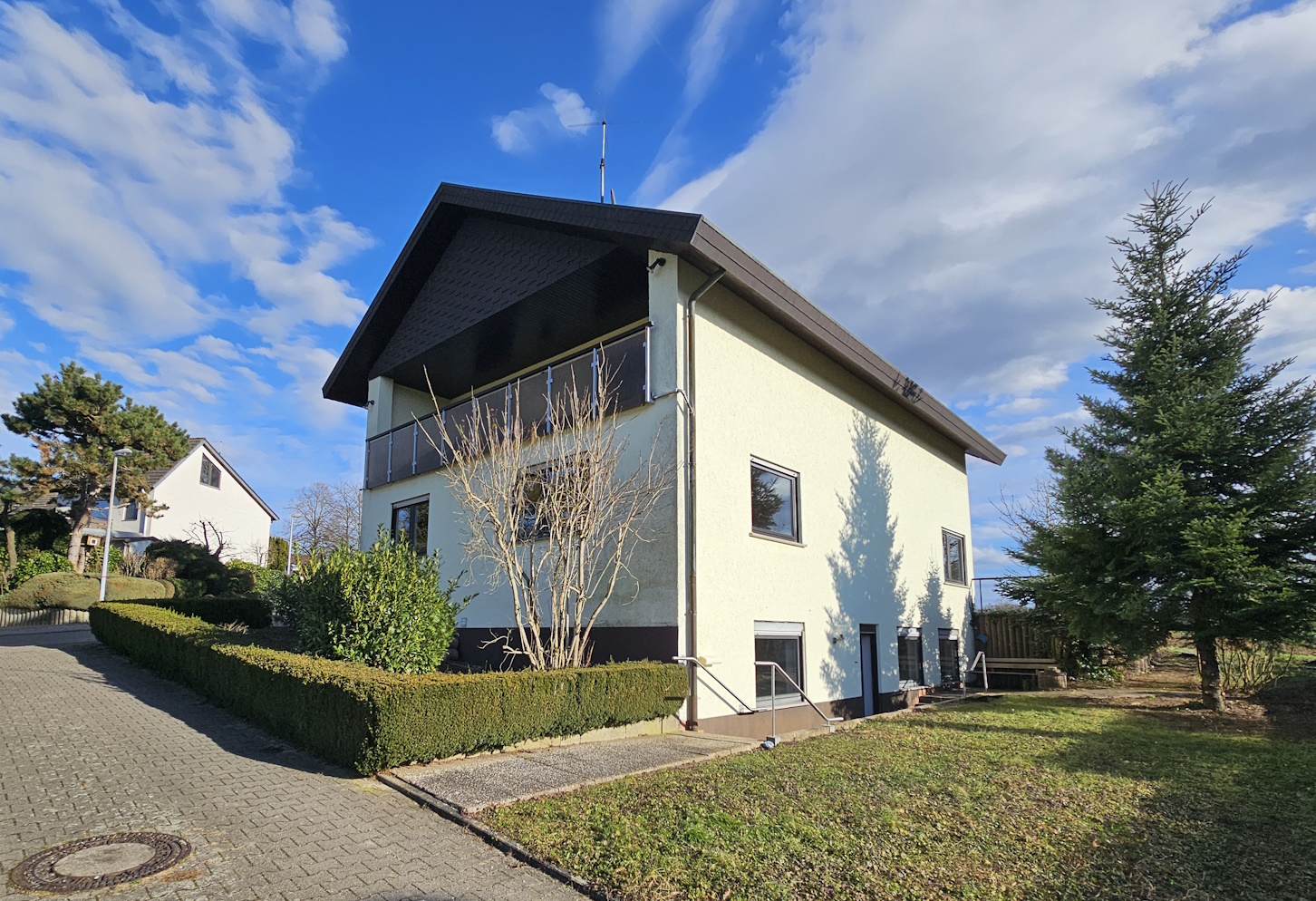 Solide Massivbauweise. Gute Substanz. 202 m² Wohnfläche im Erd- und Dachgeschoß; ca. 60 m² im Souterrain (zuletzt als Praxis genutzt). Terrasse im Erdgeschoß mit unverbautem Blick auf Wiesen und Felder. Loggia im Dachgeschoß mit Panoramablick. Praxis / Büroräume im Souterrain mit separatem Zugang. Doppelgarage mit Zugang zum Haus.