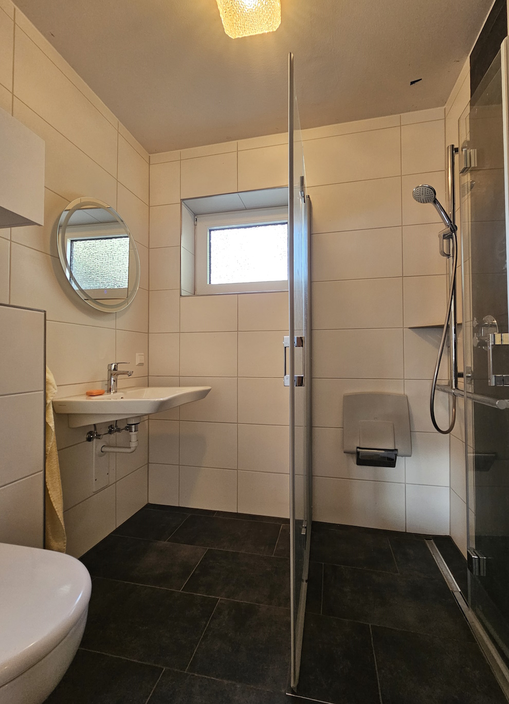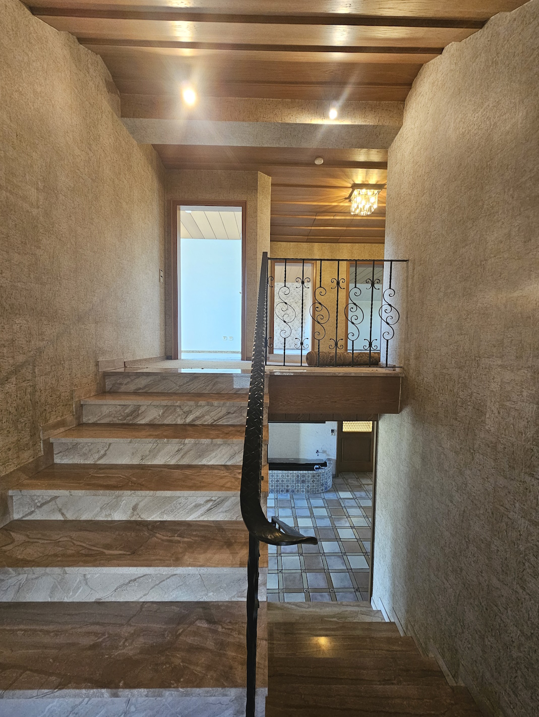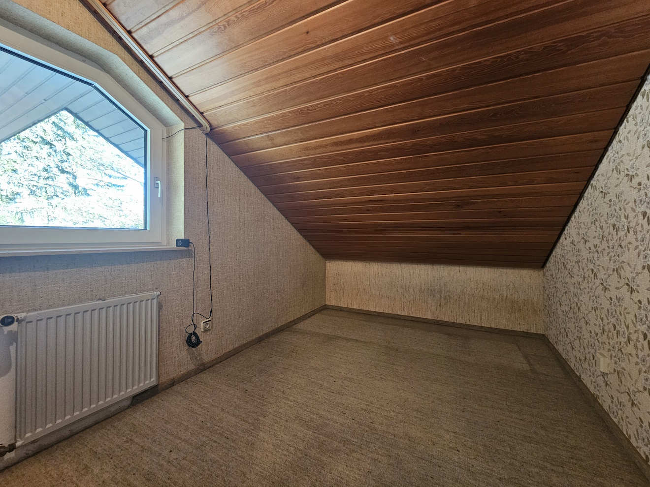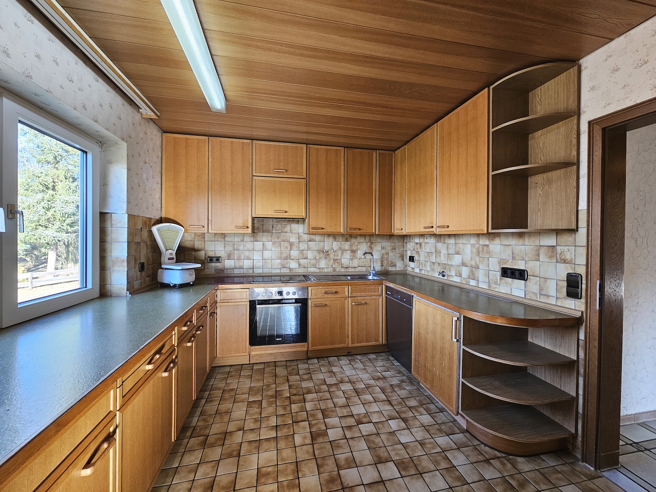 Solide Massivbauweise. Gute Substanz. 202 m² Wohnfläche im Erd- und Dachgeschoß; ca. 60 m² im Souterrain (zuletzt als Praxis genutzt). Terrasse im Erdgeschoß mit unverbautem Blick auf Wiesen und Felder. Loggia im Dachgeschoß mit Panoramablick. Praxis / Büroräume im Souterrain mit separatem Zugang. Doppelgarage mit Zugang zum Haus.