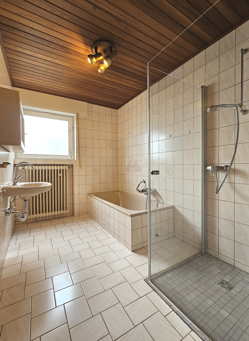 Solides, voll unterkellertes Haus mit zwei hellen, gut geschnittenen Wohnungen (109 m² im EG bzw. 102 m² im OG) und ausbaufähigem Dachgeschoss. Wohnung im Erdgeschoss mit großer Terrasse und Gartenzugang; Wohnung im Obergeschoss mit Südbalkon und toller Aussicht. Modernisierungsbedürftig.