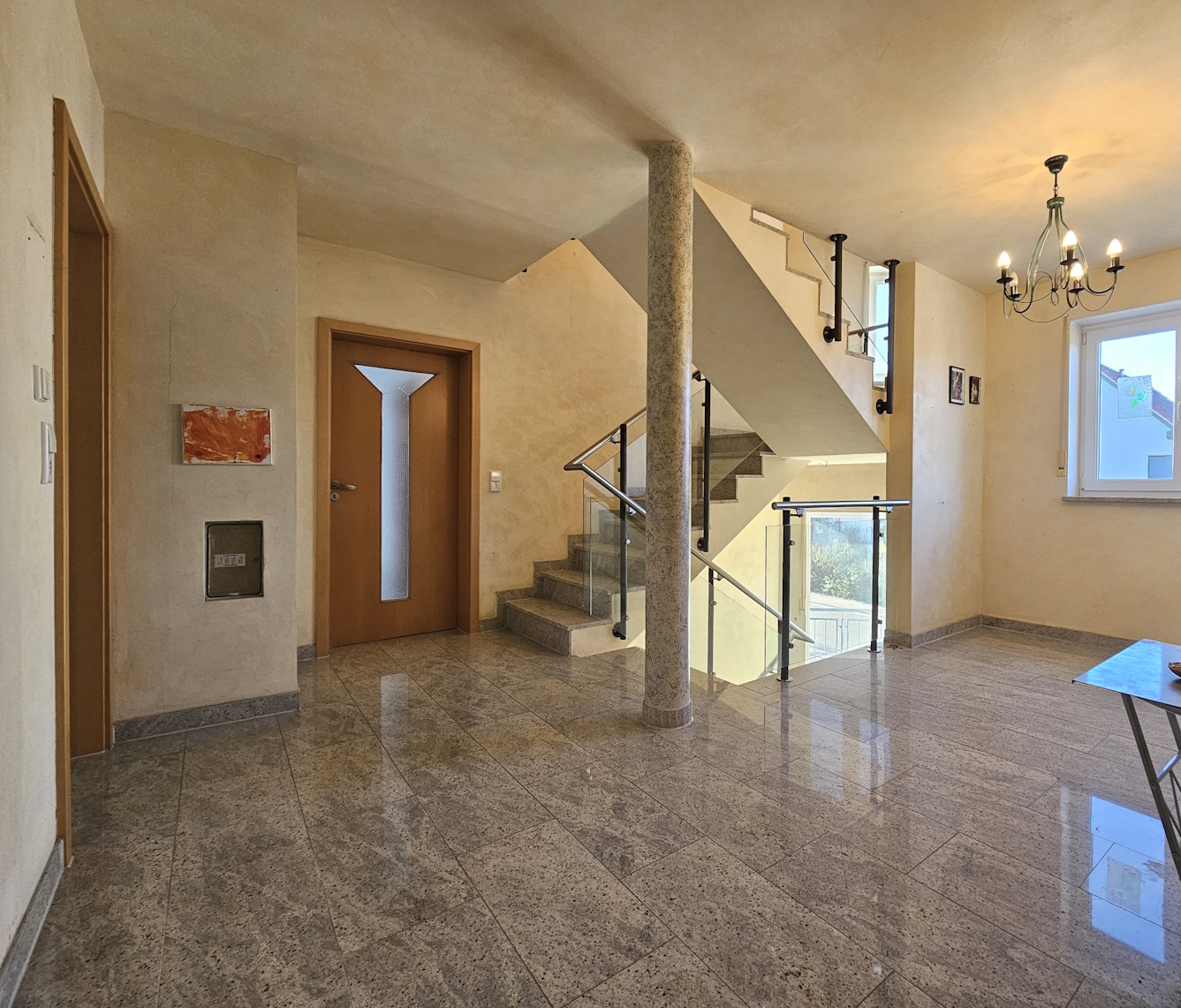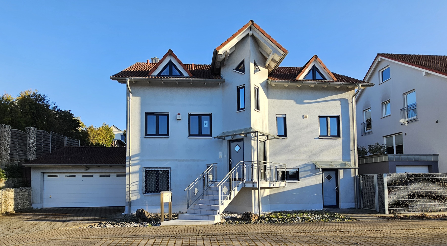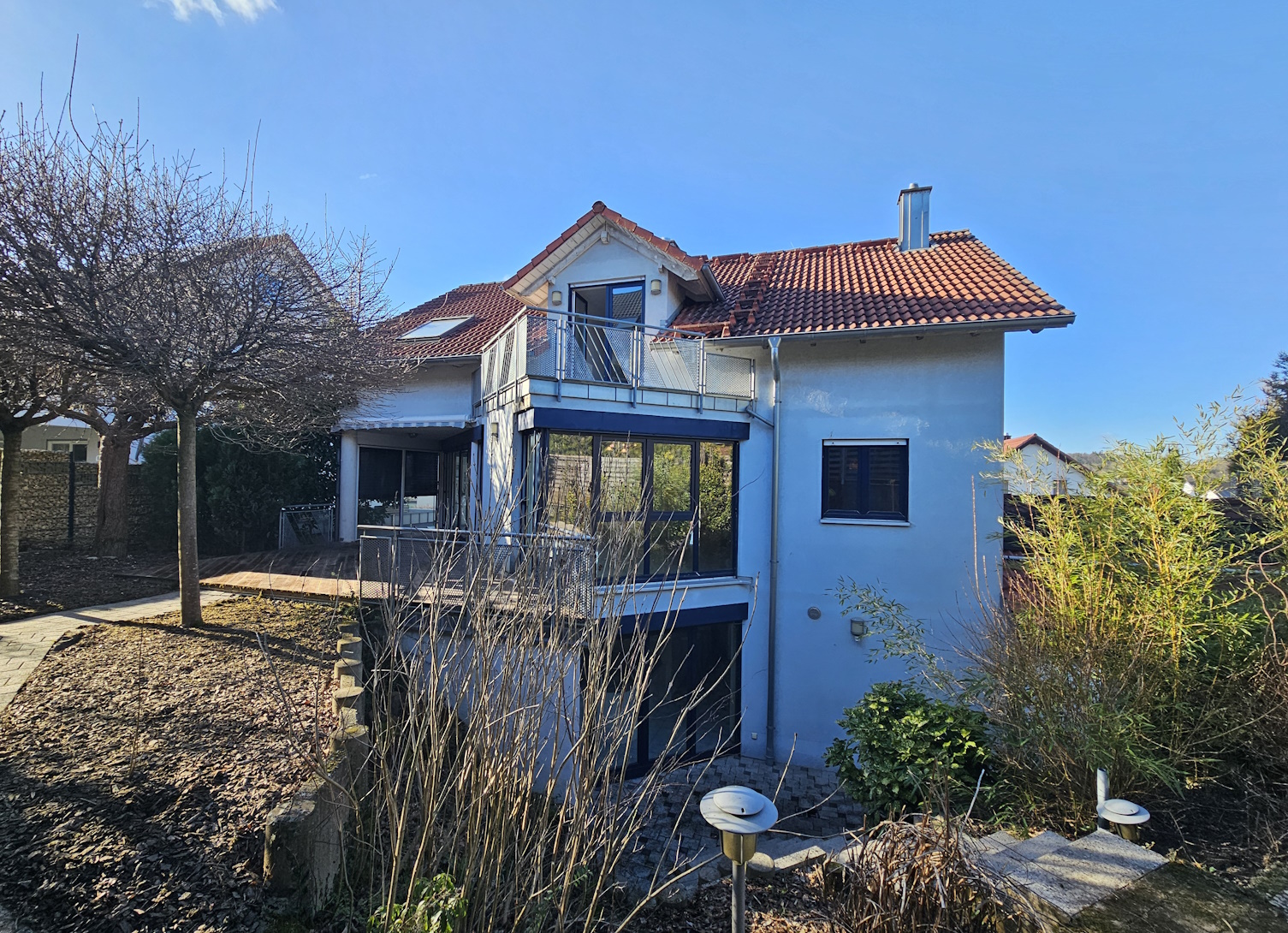 In solider Massivbauweise errichtetes, geräumiges Architektenhaus mit gehobener Ausstattung. 217 m² Wohnfläche im Souterrain, Erd- und Dachgeschoss des Hauses sowie 52 m² Wohnfläche in der Einliegerwohnung (Rohbau) im Souterrain. Wellnessbereich mit Sauna und Whirlpool im Souterrain, große Doppelgarage mit Zugang ins Haus und in den Garten. 50 m² Wohn- und Essbereich mit Panoramaverglasung und ebenerdigem Zugang zur Terrasse und den blickgeschützten Garten mit Außenpool. Elternschlafzimmer mit Ankleidezimmer (Badezimmer en Suite) sowie zwei gut dimensionierte Kinderzimmer im Dachgeschoss.