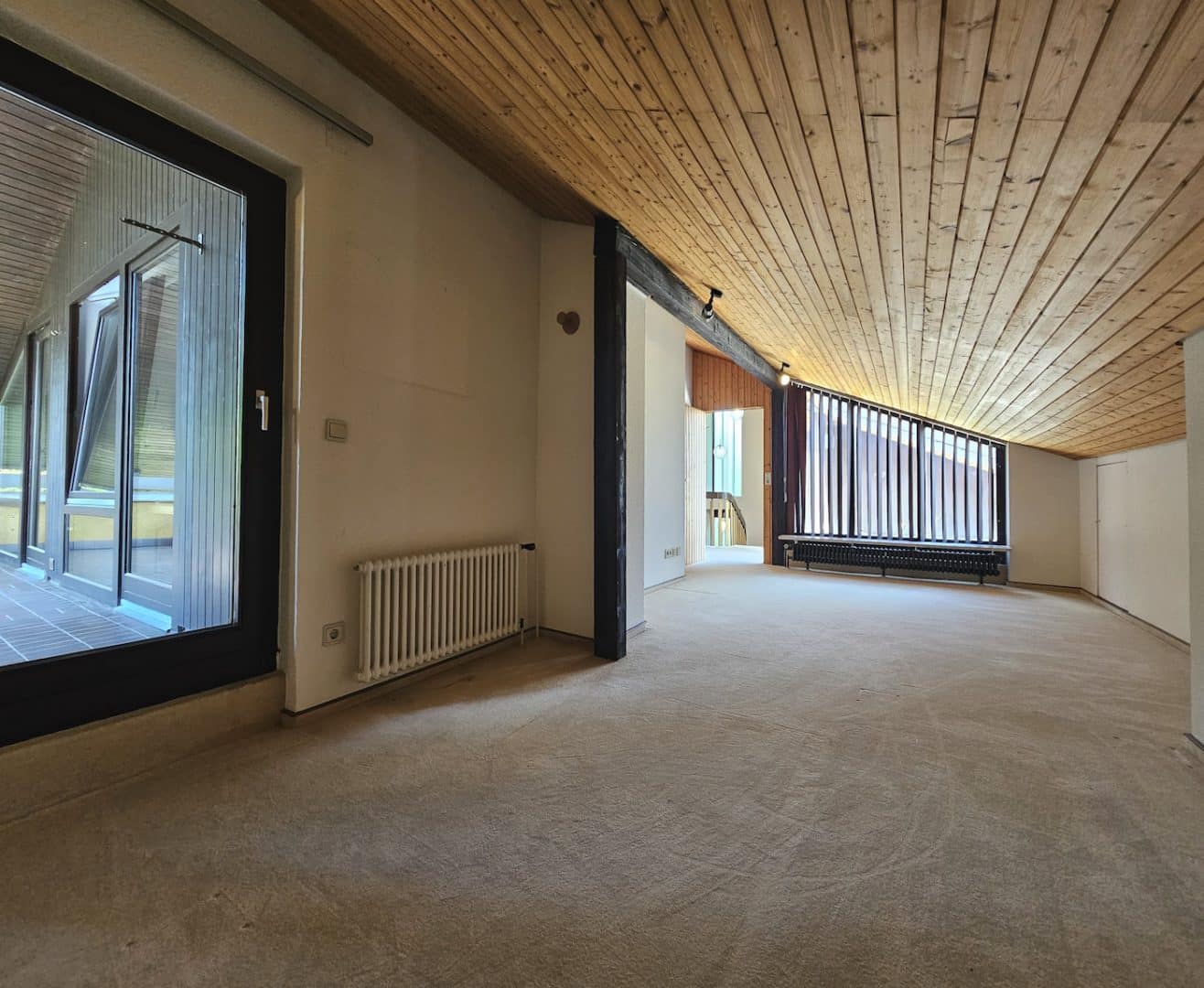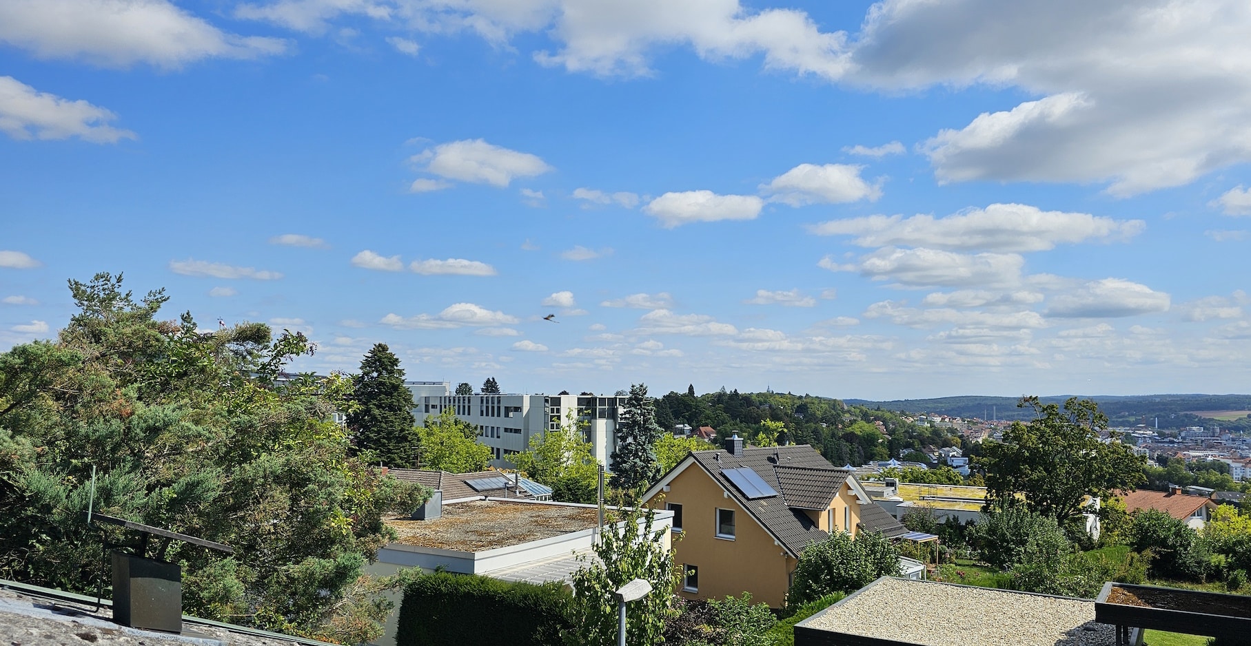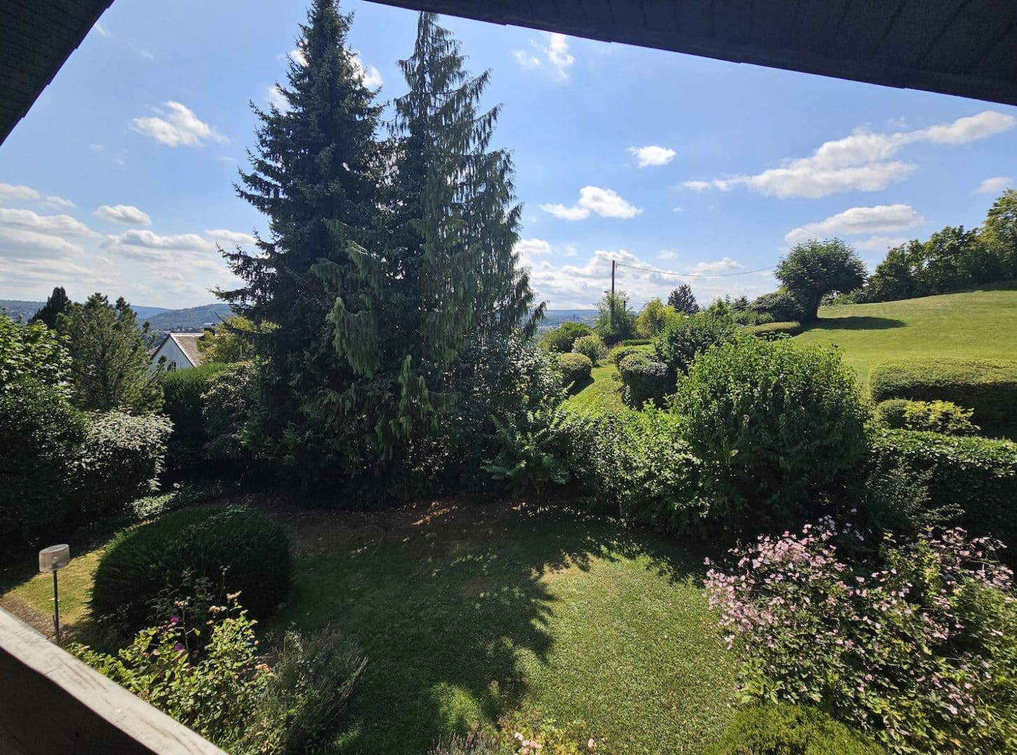 Im Erdgeschoss schließt sich an die Terrassen der schöne, blickgeschützte Garten an. Im Dachgeschoss eröffnen sich von der Loggia und der Dachterrasse wunderbare Aussichten in´s Grüne und über die Stadt.