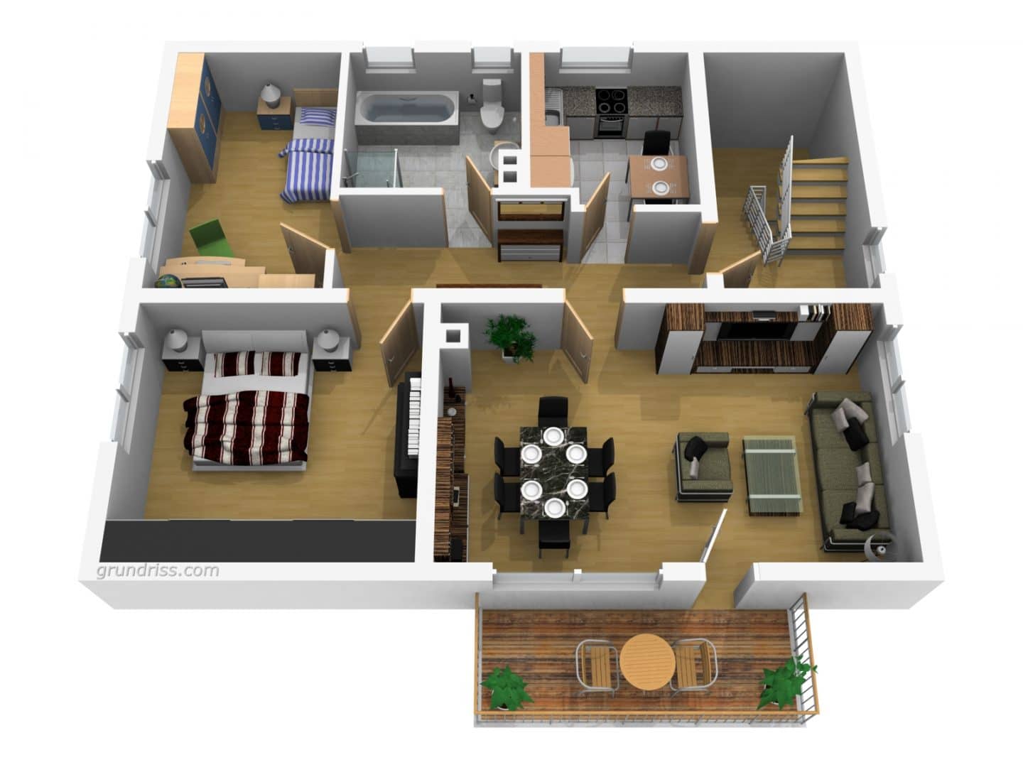 - Erdgeschoss: 3 Zimmer, ca. 77 m², Terrasse mit Zugang in den Garten